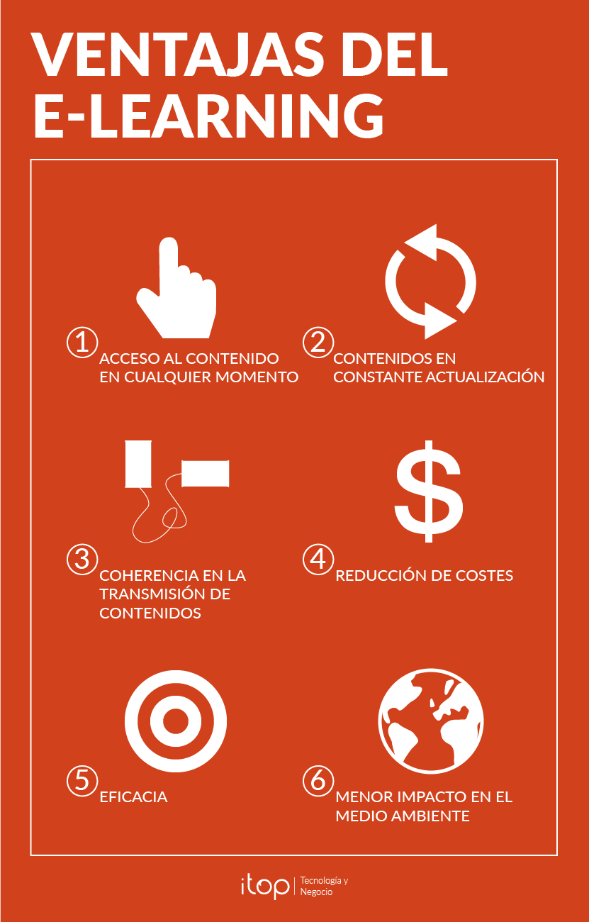 Nos ofrece una mayor flexibilidad respecto a la formación habitual, ya que no necesitamos un lugar físico para las clases, con una programación de horarios fijada en el que tienen que asistir profesores y alumnos y la, en ocasiones, incomodidad de desplazarnos a un lugar lejano para asistir al curso.