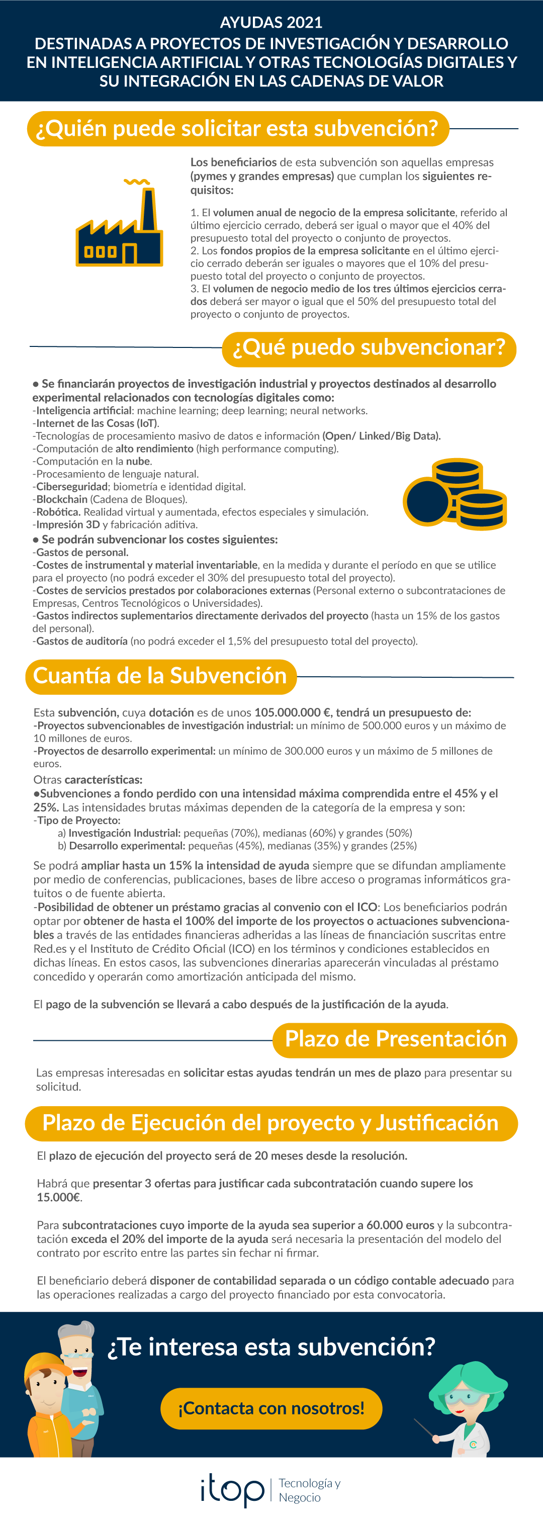 Itop como proveedor te acompañará durante todo el proceso de implantación y te facilitará en tiempo y forma toda la documentación que necesitas presentar para la justificación del proyecto tecnológico que hemos acometido para la mejora de los procesos en tu empresa.