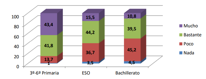 Los estudiantes tienen diferentes visiones notoriamente diferenciadas a la competencia digital de su profesorado en función de su edad y etapa educativa. Los alumnos de menor edad perciben que su profesorado está capacitado totalmente para enseñar mediante formación online. Sin embargo, esta percepción cambia radicalmente a medida que la edad del alumno aumenta, de forma que opinan que su profesorado dispone de menos competencia digital que los alumnos y que la mayoría de los docentes no saben enseñar con TIC.