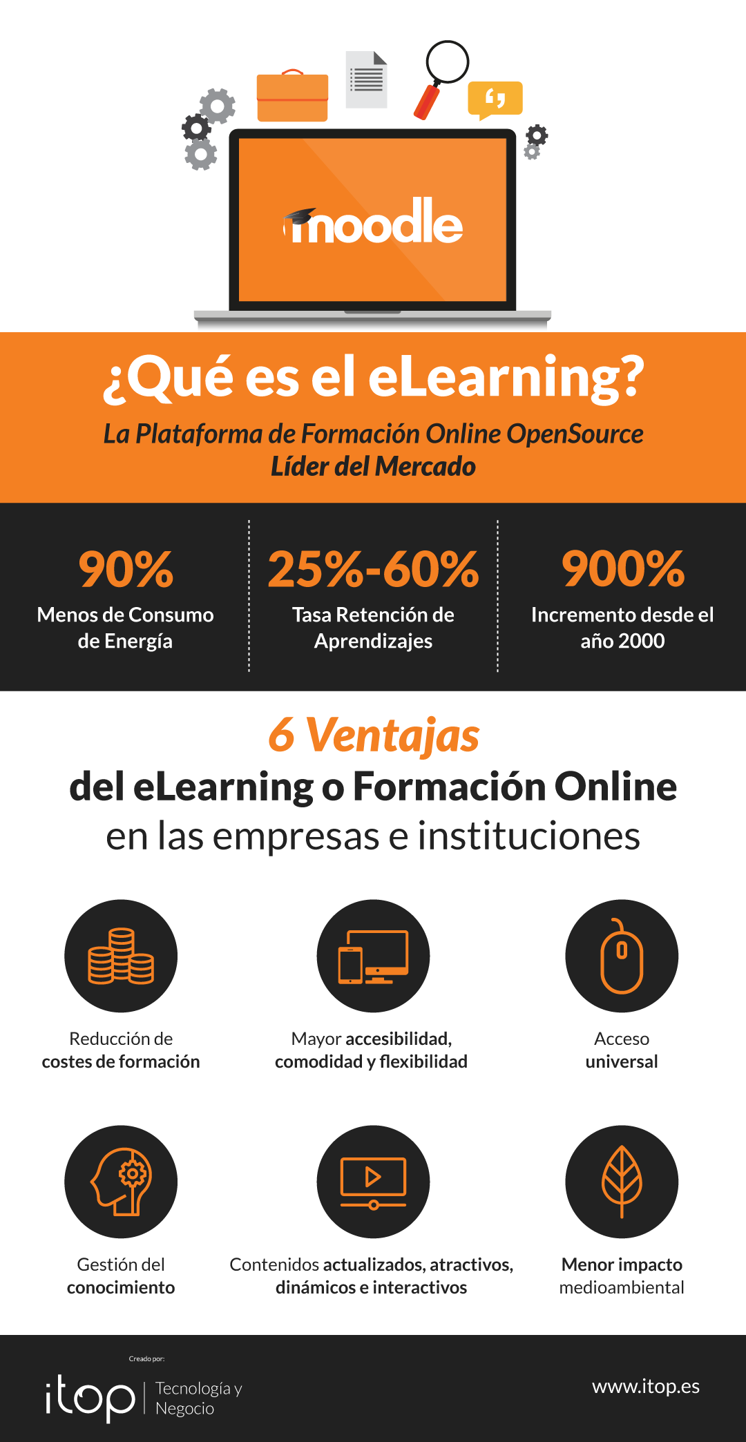 Antes de explicar sus ventajas, primero hay que definir qué entendemos exactamente por eLearning. Una plataforma eLearning es un campus o espacio virtual de aprendizaje donde se ofrece material formativo. Los usuarios pueden acceder a educación online gracias al uso de diferentes herramientas digitales, como Moodle, que lo facilitan.