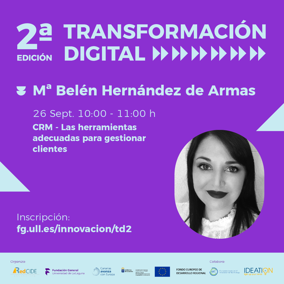 Como se ha hecho en multitud de eventos, Itop Consulting asistirá a la 2ª edición de «Transformación Digital: Inspiración, Acción e Impacto», donde dará una charla el próximo 26 de Septiembre a las 10:00h. sobre el «CRM-Las herramientas adecuadas para gestionar clientes», impartida por Belén Hernández, Sales Development Representative (SDR), con el fin de explicar de aprender qué es y cómo funciona un CRM, reflexionar sobre el potencial que puede ofrecer un CRM, y por qué es clave en el desarrollo empresarial.