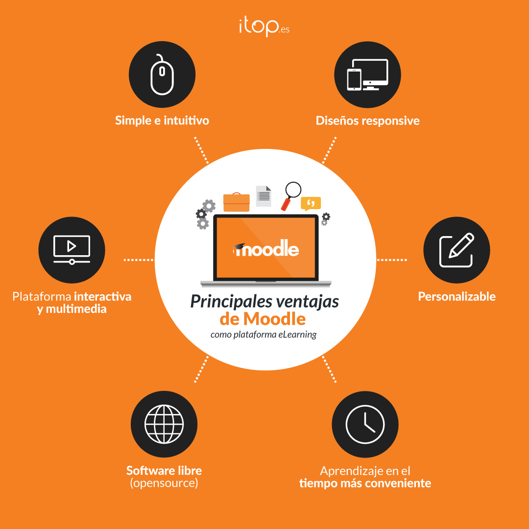 Posee una interfaz simple y muy fácil de usar, con características, recursos y mejoras continuas de usabilidad que hacen de Moodle la plataforma ideal para aprender. Además, al tratarse de una herramienta eLearning y de código abierto, continuamente se hacen revisiones y se aplican mejoras para adaptarse a las necesidades actuales y cambiantes de sus usuarios.