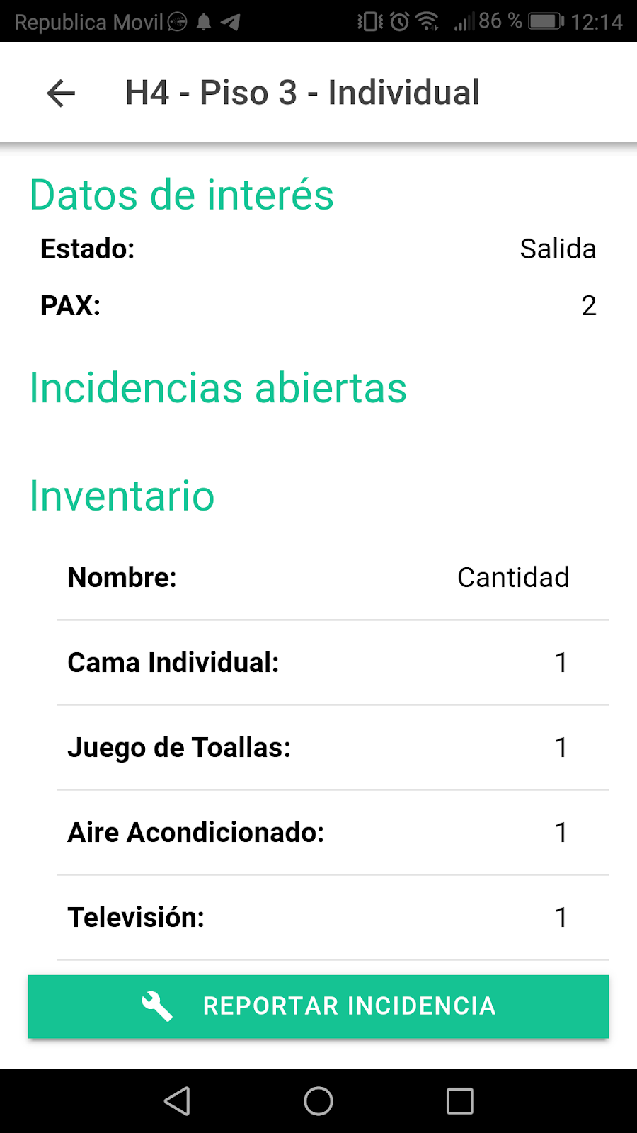 Otro ejemplo, podría ser, el hecho de que haya o no, suficientes toallas en la habitación. La camarera de piso o el cliente, indicarán a la aplicación si faltan, o si es necesario cualquier otro útil ofertado por el hotel, como la televisión, el aire acondicionado, las almohadas…