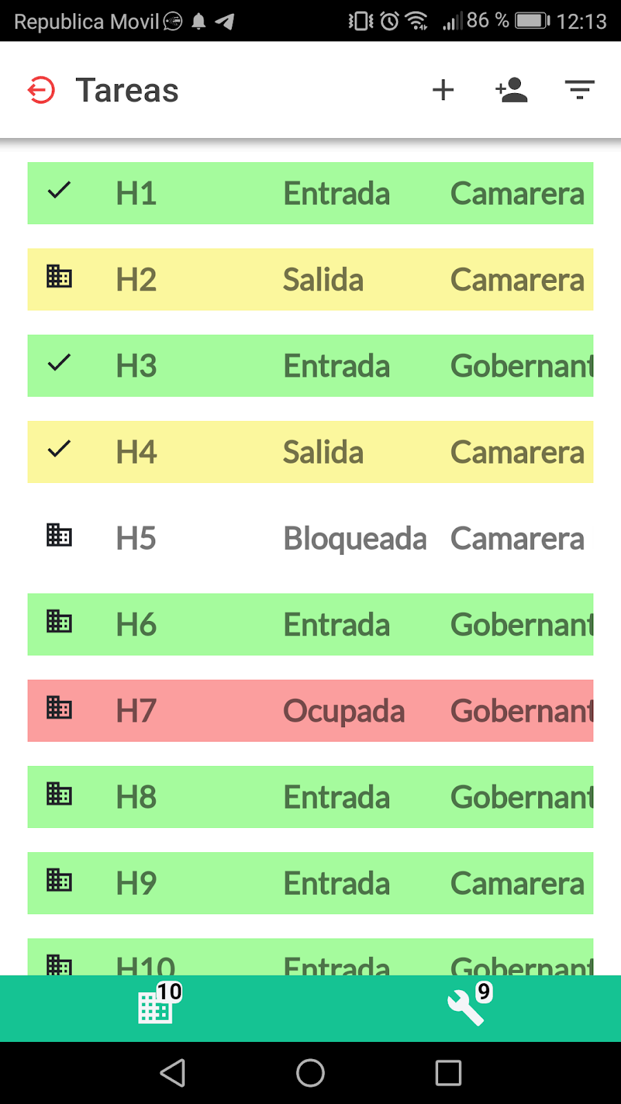 Siguiendo con el mismo ejemplo, al notificarse la incidencia, a la hora de asignarle la tarea a otra camarera, la aplicación nos muestra la disponibilidad de estas en cada momento organizando así el trabajo de una forma eficaz, inteligente, y sobre todo, productiva.