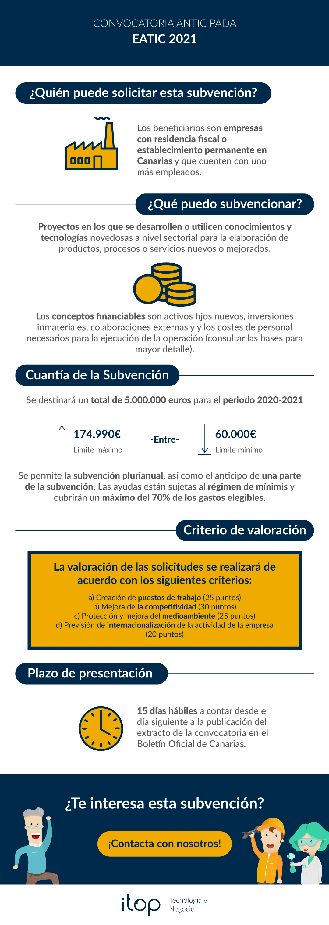 Itop como proveedor te acompañará durante todo el proceso de implantación y te facilitará en tiempo y forma toda la documentación que necesitas presentar para la justificación del proyecto tecnológico que hemos acometido para la mejora de los procesos en tu empresa.
