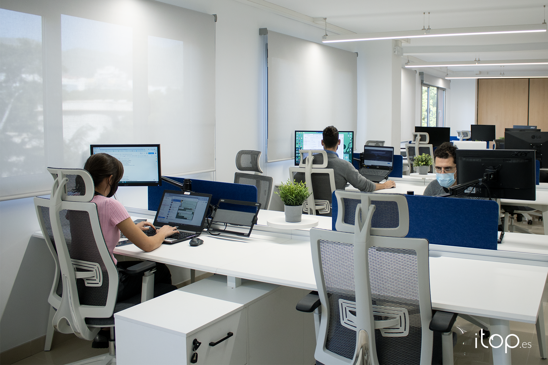 En Itop, optamos por una metodología en la cual durante la semana los trabajadores tenemos tres días presenciales y dos días de teletrabajo. Además, apoyamos al movimiento de coworking en Tenerife y de nómadas digitales en Canarias, ofreciendo nuestras propias oficinas como un espacio de coworking en Santa Cruz de Tenerife.
