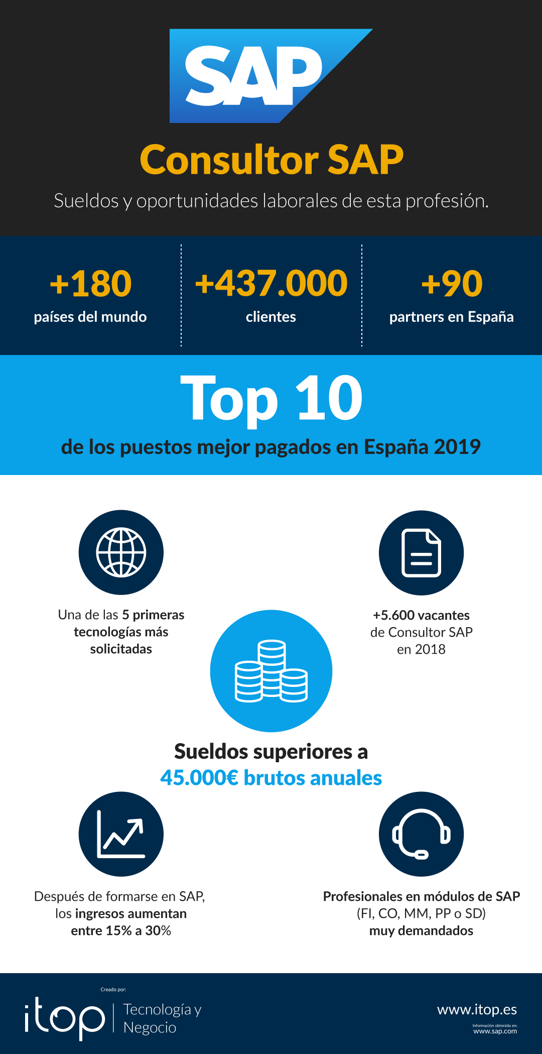 SAP se encuentra entre las 5 tecnologías más demandadas a nivel mundial, con salarios que pueden superar los 45.000 euros/año dependiendo también del mercado específico. Este tipo de formación en SAP puede aumentar tu salario de media entre un 15-20% teniendo así mejores oportunidades laborales.