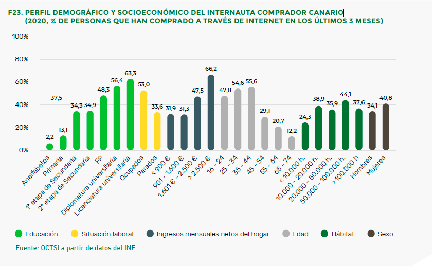 El perfil de comprador habitual en Canarias sería el de una mujer con trabajo, con estudios de Formación Profesional o superiores, con ingresos medio-altos o altos y menor de 45 años.